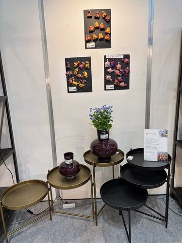 今回のブース装花も、「サトウ花店」様のトップデザイナー、千葉様に装花をして頂きました。