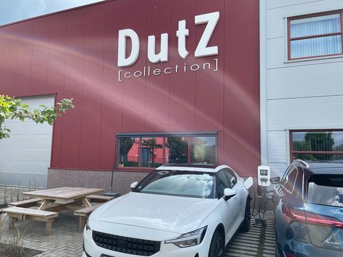ベルギー、アントワープ近郊のSERAX社で注文を終えて、ランチもご馳走になりました。有難うございました。これから本日2社目のDutz社へ向かいますが、約3時間の走行に充電がまだ充分でないため、SERAX社の近くのスーパーの駐車場で電気チャージ。その間にお客様はベルギーのお土産の買い物をなさっています。