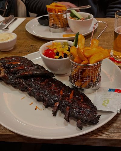 ホテルのレストランで、美味しいビールと、美味しい食事を頂きます。